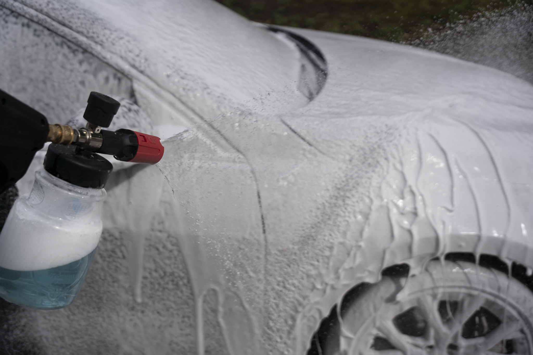 Snow foam pre-washing is an essential step in the detailing process, as it removes the majority of dirt before the contact wash stage. This helps to reduce the risk of inflicting fine swirl marks and marring.